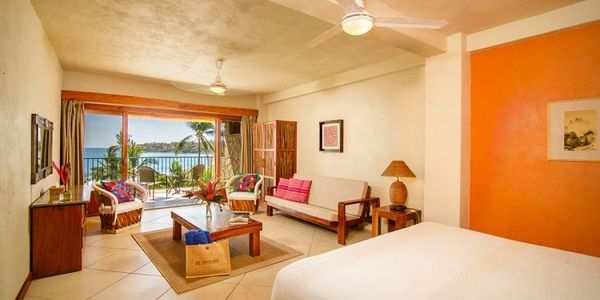 Garden Rooms are either crafted in a Mexican style, with natural rock walls and hand painted mosaics; or with an airy Mediterranean feel with floor-to-ceiling windows that let in plenty of natural light and fresh breeze. Each room is air conditioned and has a spacious en-suite bathroom with natural bath amenities. Located on the ground floor.